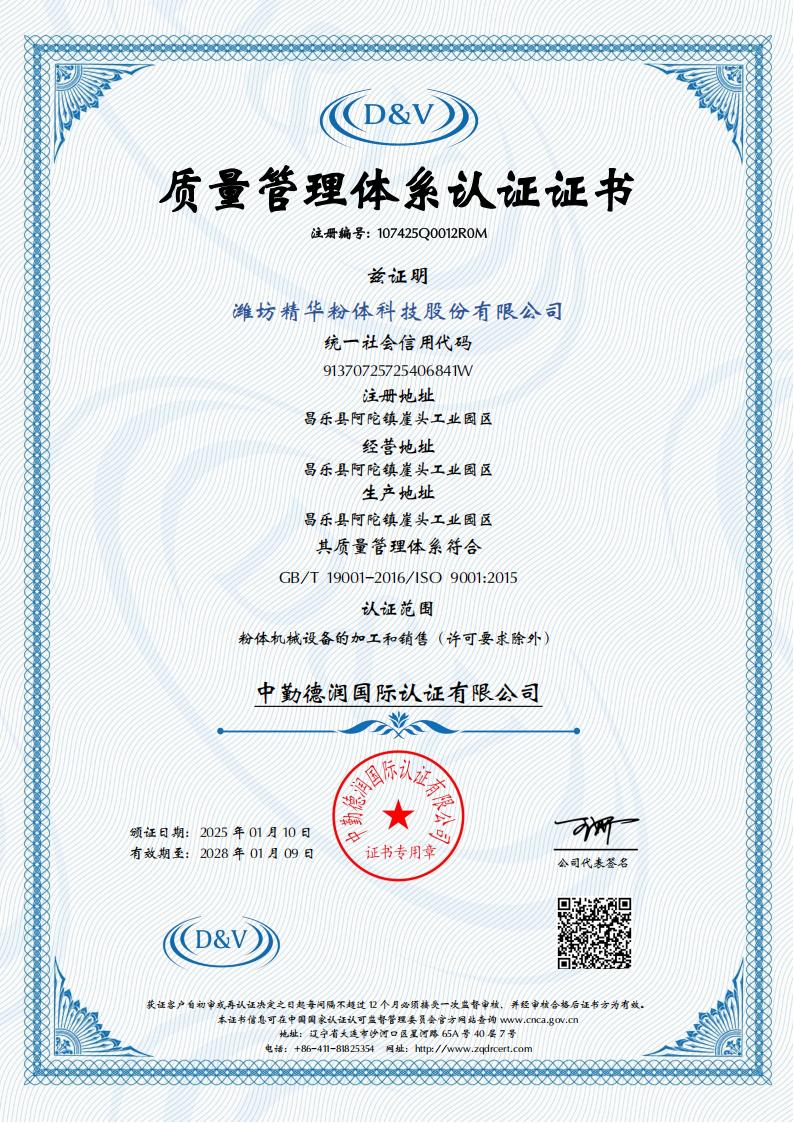濰坊精華粉體科技股份有限公司的前身是濰坊市精華粉體工程設備有限公司(2024年11月完成股改更為現(xiàn)名)已發(fā)展為國內(nèi)最大的超細粉體設備研發(fā)與制造企業(yè)。